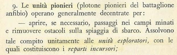 La prova documentale di quanto affermo si trova nella pubblicazione N. 5891 impiego del gruppo tattico lagunare al livello di battaglione (N. 782 della serie dottrinale), 1968, in cui la formazione di questi Lagunari particolari si deve alla fusione di due incarichi presenti negli organici dei tre battaglioni anfibi che costituivano il reggimento fino al 1975: esploratori e pionieri.