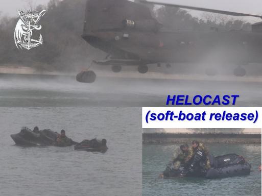 Altra novità è rappresentata dal fatto che i team Recon utilizzano un sistema misto ‘aereo e navale’ per l’inserzione. Si tratta infatti di imbarcare i battelli pneumatici Zodiac FC-470, sgonfi e arrotolati (più motori, serbatoi di carburante e contenitori per armi e materiali), su elicotteri SH-3D che, di notte, li rilasciano in mare aperto e da lì proseguono verso terra.