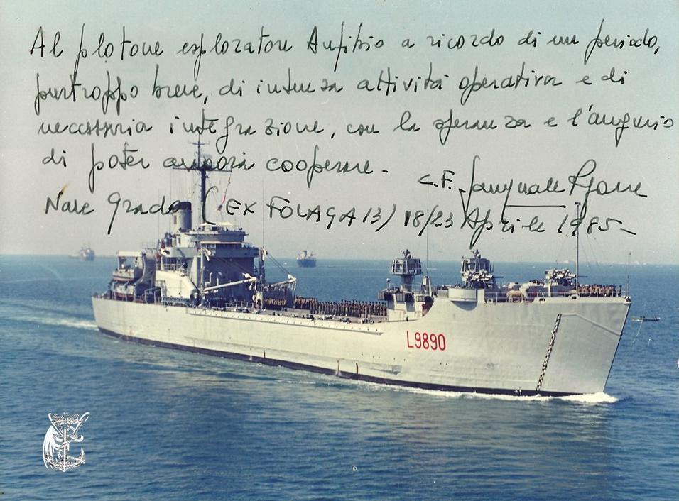 Al momento di lasciare la nave, il Comandante della ‘Grado’ ci fece dono di una foto la cui dedica rappresentò davvero un porta fortuna, poiché nei quattro anni successivi, gli esploratori anfibi furono chiamati a partecipare all’annuale edizione della ‘Folaga’.