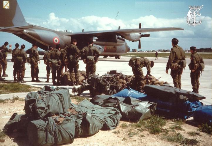 La seconda volta che il plotone si rischiera a Brindisi la fa per via aerea. All’aeroporto di Venezia-Tessera, a bordo di un C-130 Hercules della 46a Brigata Aerea, carichiamo ogni cosa necessaria alla condotta di un colpo di mano anfibio: armi, munizioni e artifizi, apparati radio e strumenti ottici, mute e pinne, zaini, battelli pneumatici (smontati), motori fuoribordo, serbatoi (vuoti) e olio per miscela, bussole nautiche; più altri articoli ritenuti utili.